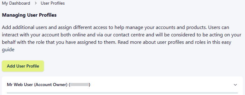 Learn how to add, edit or manage user profiles on your Mweb Online Account to control access and permissions.